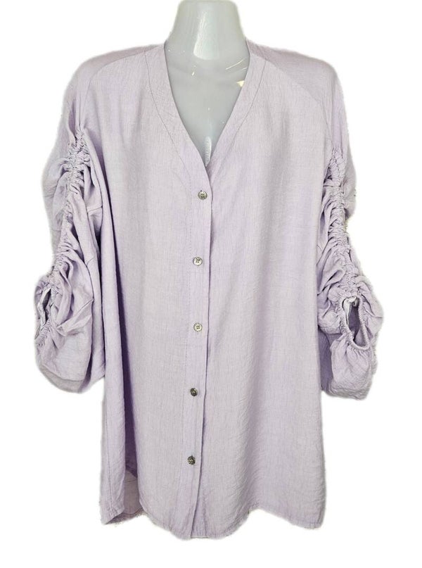 1001-BL Blouse mouw rimpelen met koord